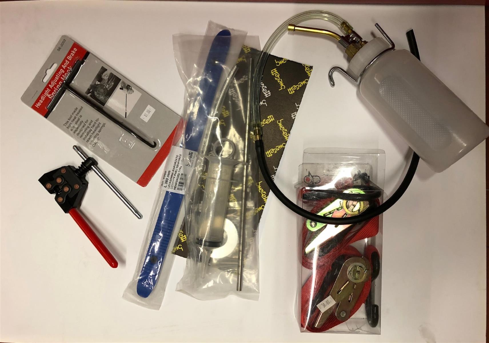 Leva gomme, chiave rubinetto, chiave candela, tiraraggi, estrattori, taniche per spurgo olio freni