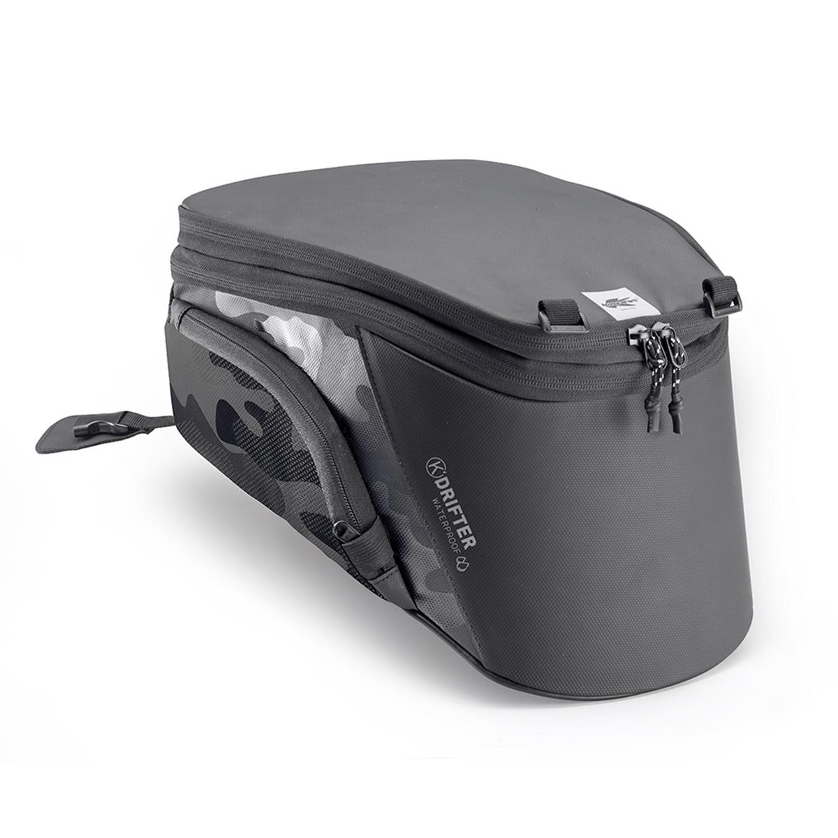 • Tessuto esterno in poliestere 1680D PU coating (colore nero) • Fodera interna in poliestere 210D (colore nero) • Sacca interna waterproof estraibile in tessuto poliestere 190T termonastrato (colore grigio) • Portacartina termosaldato con corpo principale in PVC tarpaulin 500D (colore nero) e PVC trasparente per la finestra superiore • PVC anti scivolo sul fondo per maggior aderenza al serbatoio • Rinforzi interni in polipropilene ed EVA che ne aumentano la rigidità e la stabilità • Tessuti UV TESTED • Cinghia di sicurezza per aggancio allo sterzo • Porta cartina / device waterproof removibile • Dotata di cable port per ricaricare i propri dispositivi elettronici • Stampa effetto camouflage tono su tono • Stampe reflex 3M per maggiore visibilità passiva • Tasche laterali • Zip certificate SAB • Estensibile da 10 lt. a 15 lt.