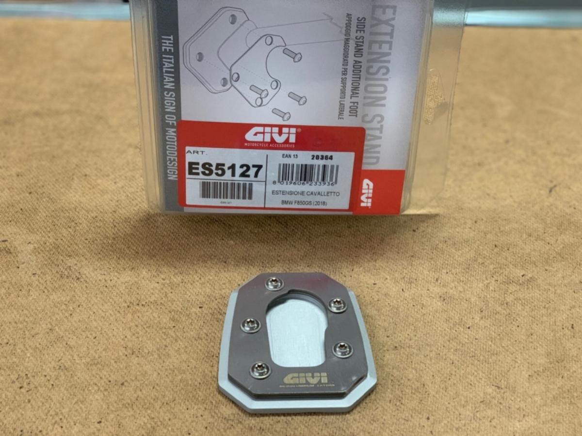Le estensioni per cavalletto realizzate da GIVI allargano la base di appoggio del cavalletto laterale della moto e di conseguenza diminuiscono il rischio di caduta del veicolo nel caso si parcheggi su fondo fangoso, sabbioso, sull'erba e anche sull'asfalto nelle giornate più calde. Realizzate in alluminio fresato, satinato ed anodizzato, con il supporto superiore in acciaio INOX, le estensioni cavalletto si integrano perfettamente nella linea della moto.