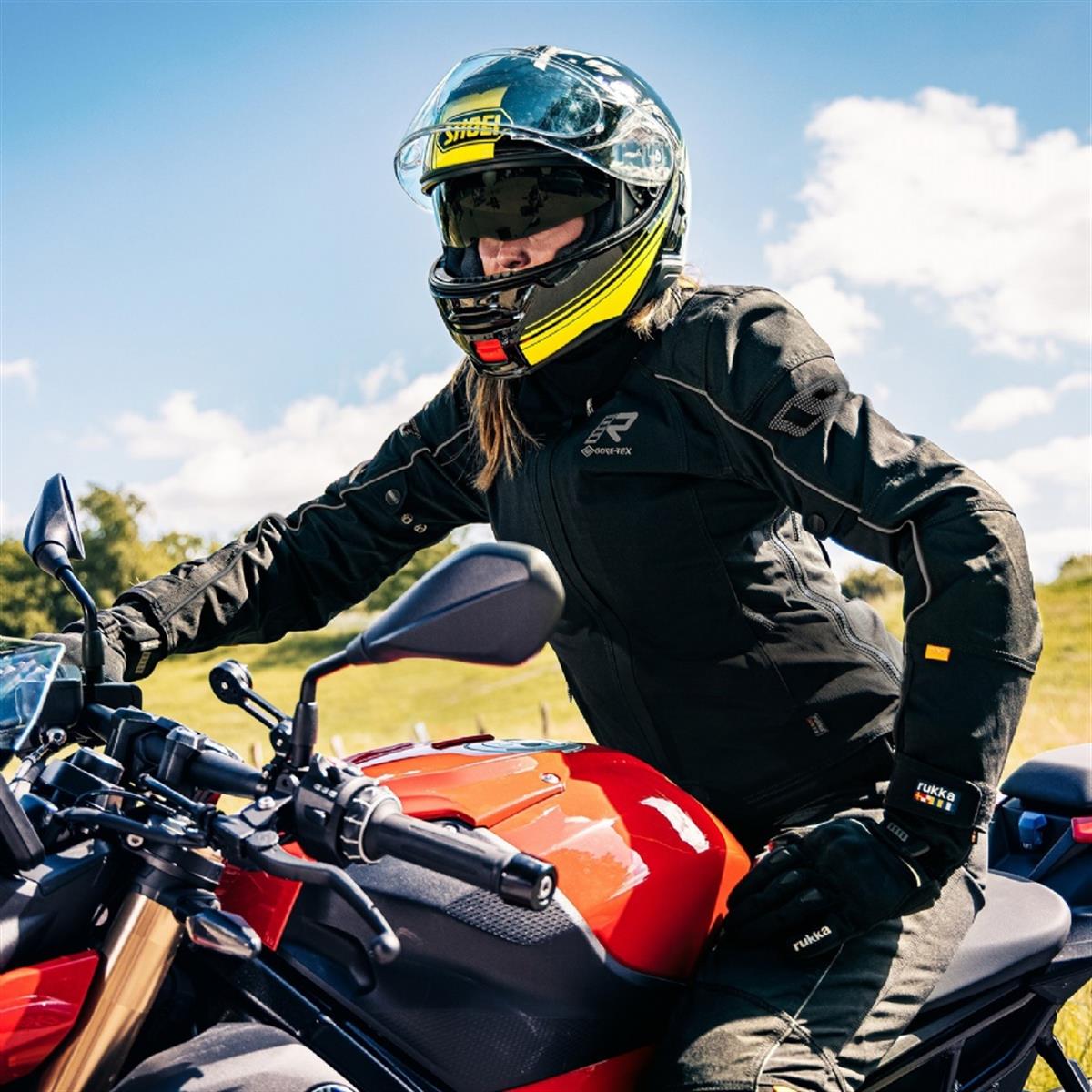 Rukka progetta e produce l'abbigliamento moto secondo le rigide linee guida, "sicuro e confortevole" con i più alti standard di impermeabilità e comfort. Ogni capo funziona meglio nella sua specifica zona di comfort Sia caldo che freddo, pioggia o sole, Rukka offre tecnologie flessibili per diverse condizioni di guida.