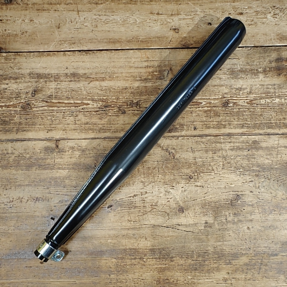 scarico tipo lungo nuovo per Garelli Noi e ciclomotori vari vintage marca CBA con codice CBA 20677226 marchiata DGM 36064-S con lunghezza 580 mm e interasse fori fissaggio 30 mm imbocco 26mm
