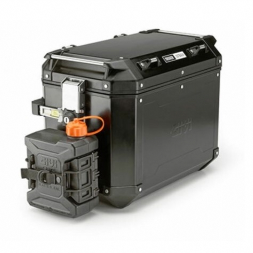 SUPPORTO SPECIFICO IN NYLON CARICATO FIBRA DI VETRO, PER MONTARE LA TANICA TAN01 SULLE VALIGIE OUTBACK, DOLOMITI E ALASKA • Struttura in nylon caricato fibra di vetro • Compatibile con la tanica GIVI TAN01 • Sistema di apertura rapido, per permettere l’inserimento e l’estrazione della tanica