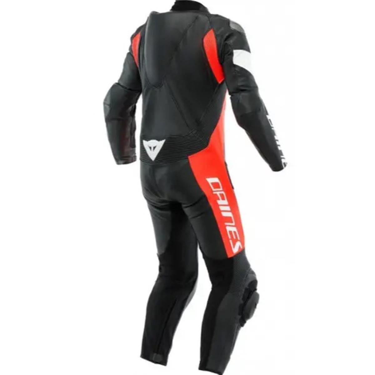 Tuta moto intera Dainese Tosa certificata secondo norma europea CE EN17092, realizzata in pregiata pelle bovina Tutu perforata per il massimo comfort termico nelle giornate più calde. Il classico Fit Dainese garantisce una vestibilità asciutta e aderente ma al tempo stesso grande libertà di movimento, grazie agli inserti in tessuto elastico S1 su interno braccia, inguine e retro gamba. Gli inserti elastici biassiali sulla schiena, e le elasticizzazioni sulle ginocchia e scapole, sono studiati per garantire tutta la protezione della pelle e al tempo stesso massima flessibilità e libertà di movimento. Lo speciale sistema di protezioni abbina le classiche protezioni interne Dainese con slider removibili sulle ginocchia e placche in alluminio intercambiabili sulle spalle: una tecnologia distintiva di Dainese, progettata per assecondare e favorire la scivolata in caso di caduta ed evitare così pericolosi rischi di rotolamento causati dal grip sull'asfalto. La gobba aerodinamica è predisposta per ospitare la sacca idrica collegabile al casco. È posta in corrispondenza di spalle e collo per proteggere la parte alta della schiena, svolgendo una funzione complementare con il paraschiena.